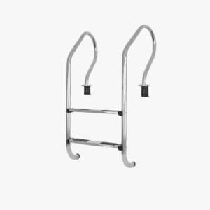 Escalera Vulcano 2 escalones. Posee laterales y peldaños de acero inoxidable. Incluye 2 anclajes y, según sus dimensiones, es ideal para ser colocada en profundidades que van desde 80 a 100 cm.