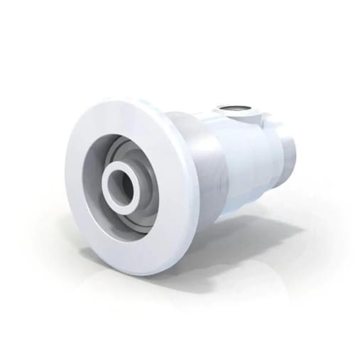 Hidromasajeador Vulcano para piscina de hormigón. Posee aro desmontable blanco y cuerpo con rosca macho de 1 1/2". Diseñado especialmente para proporcionar al usuario sensación de bienestar y acción terapéutica; ya sea mediante un chorro o jet a presión que se puede combinar con aire, mediante un caño con sombrero venturi, o instalando una bomba sopladora.